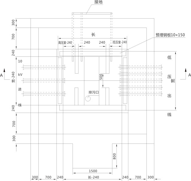 2. 基礎設在地勢較高處,四周向外排水,采用200#水泥沙漿砌筑,摻3%防水劑,底部向油槽略有傾斜(干變時取消油槽)