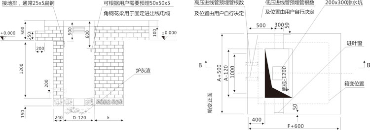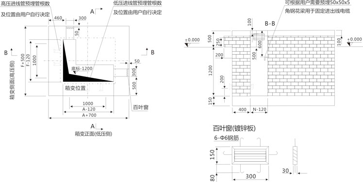 ◎ 為進線方便用戶可根據現場實際情況在三個或四個方向設置電纜井。